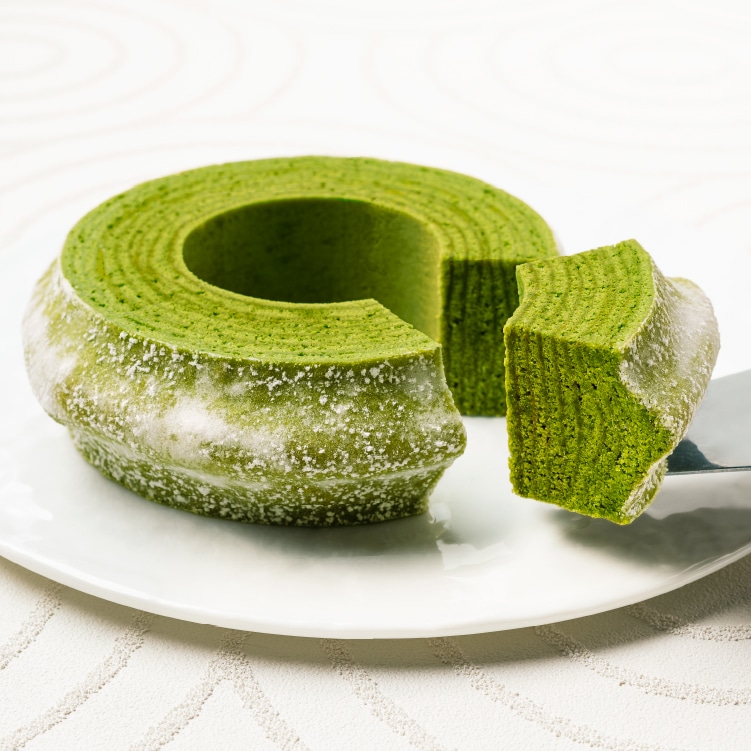 春限定の『マウントバーム お抹茶 1山』は、芳醇な抹茶の旨みが広がるバームクーヘンです。